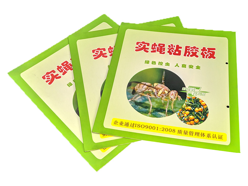 粘虫板板质可重复利用,粘虫胶无毒、无味、无污染、粘度大而不流淌、抗风化、耐水、抗紫外线、长期使用不固化。PP材料,具有一定的强度、硬度、耐湿,双面涂胶、版面不卷曲。(无覆膜,因覆膜使胶量变少,降低防治效果)