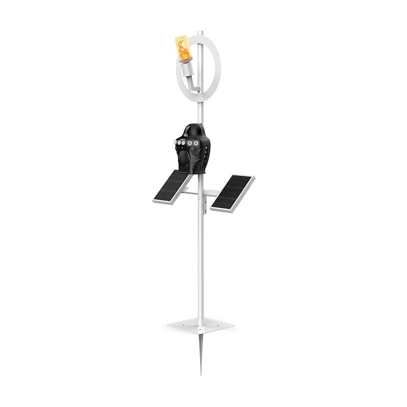 野生动物智能监测防御终端集成了先进的现代传感技术和超声波、集束强光、高仿声效、仿真火焰、神秘光圈等震慑和驱离手段,形成了一体化的监测和防御设备,该设备能有效防止野生动物进入特定区域,如农田、果园、牧场等,同时确保野生动物的安全以维护生态平衡与财产安全。设备通过自动感应动物活动并采用智能战术大脑自动启动对应的震慑措施,以保护动植物资源免受侵害。同时,该设备提供了便捷的远程监控与管理功能,用户可通过移动终端或计算机实时监控现场状况,并及时接收预警信息,确保防护工作的高效与及时。